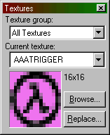Texture group - The texture group pull-down menu lets you choose either All Textures, or individual texture WADs. This affects which textures will be displayed when you Browse.
